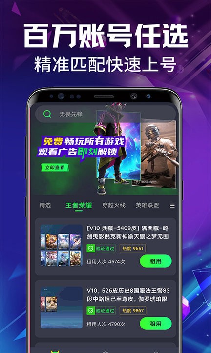 3.满足不同用户的游戏账号租赁服务,放心的进行查看