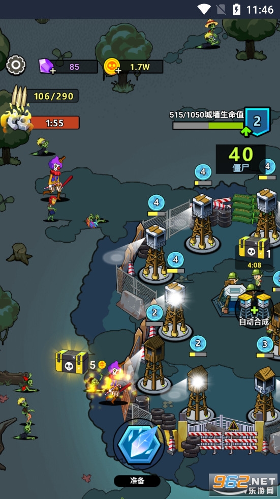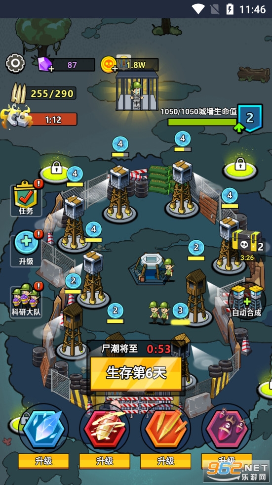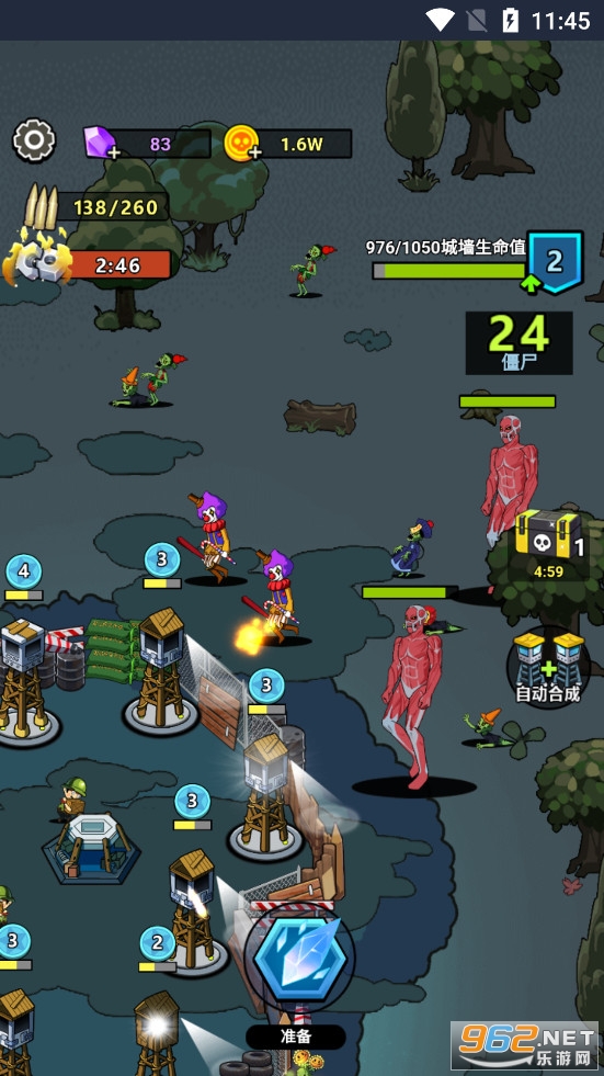 《生存21天游戏》是一款抖音上热门的合成塔防小游戏,游戏中玩家将有着一个营地,可以在周围架设各种各样的防御塔,相同等级的防御塔可以合成获得一个更高级的防御塔,玩家需要不断的合成来获得强大的防御工事,可以解锁冰冻等各种技能来辅助攻击。