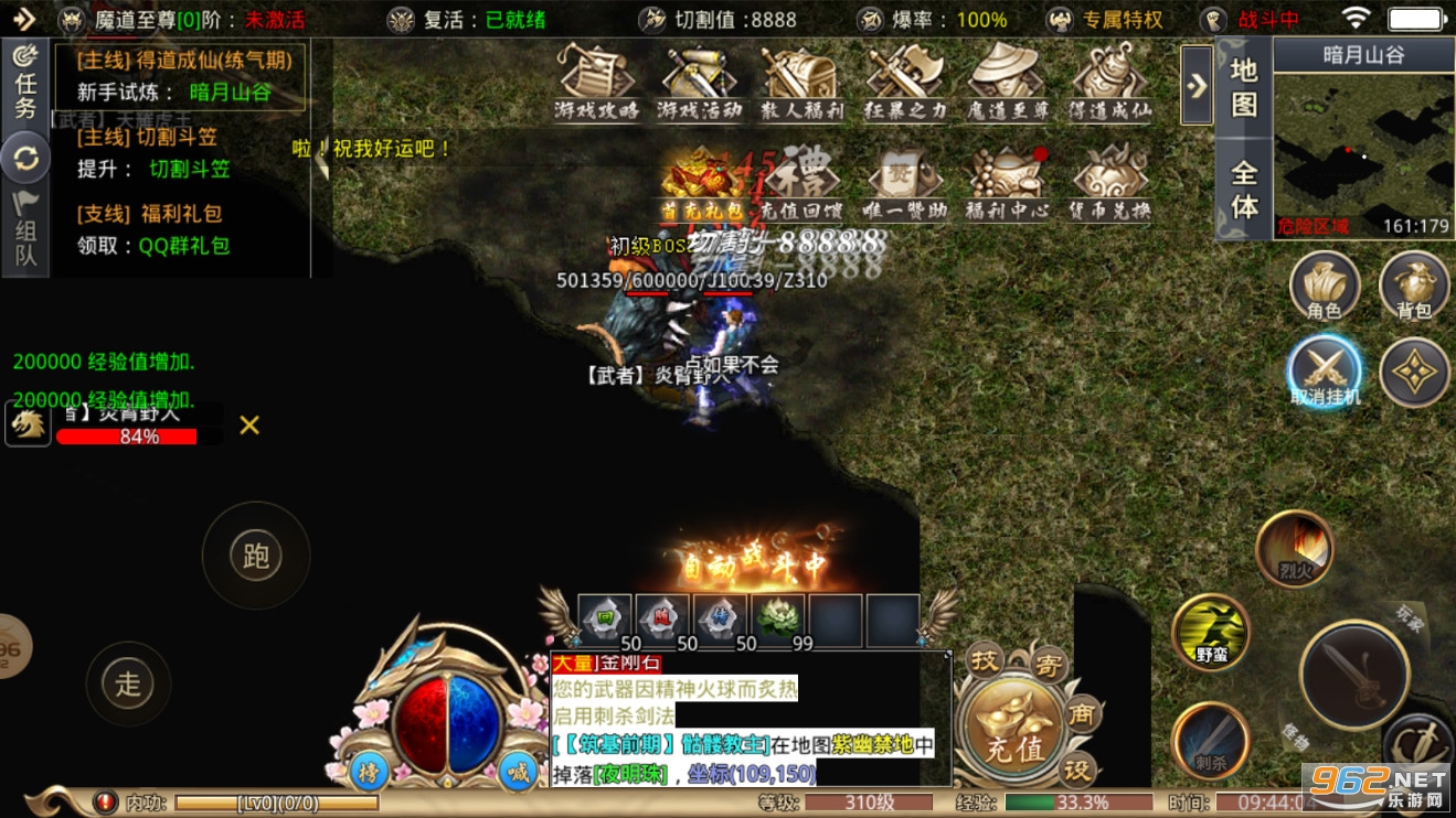 上线就送满V等特权,更有赤月套装、火龙套装等你领取;