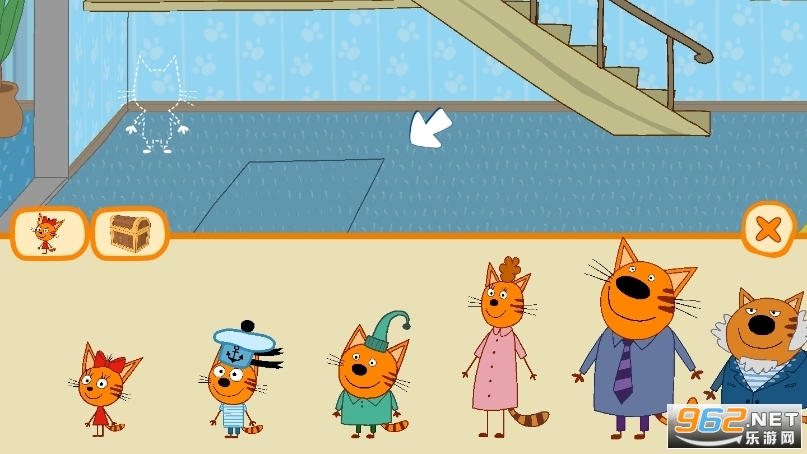 我们为您建造了四层楼的乐趣——爸爸的办公室、小猫的卧室、厨房、客厅、妈妈的办公室、地下室、阁楼练习室等等——在那里你可以和你最喜欢的角色一起玩耍和玩耍 . 仔细看! 每个房间都充满了隐藏的惊喜。 偷看壁橱和梳妆台、冰箱和食品储藏室。 你可以调查任何你想要的。 给小猫穿上不同的衣服,为它们想游戏和故事,录制自己的卡通片并与世界各地的朋友分享。