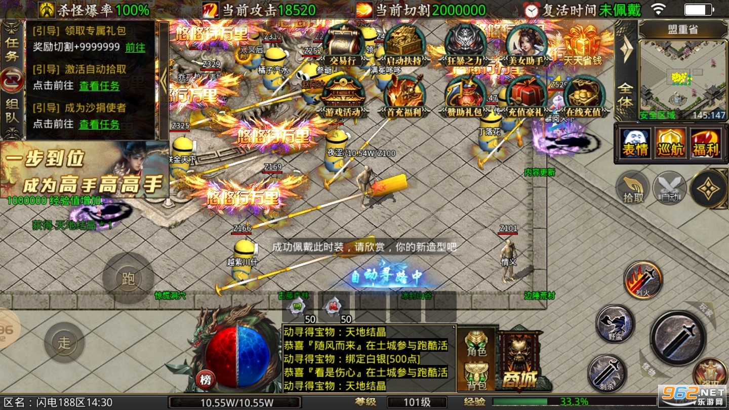 【跨服战场】:合区后定时开放跨服战场,战场内可获得顶级装备顶级生肖!