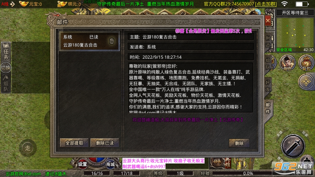一键回收系统,随时随地都能回收元宝及装备;
