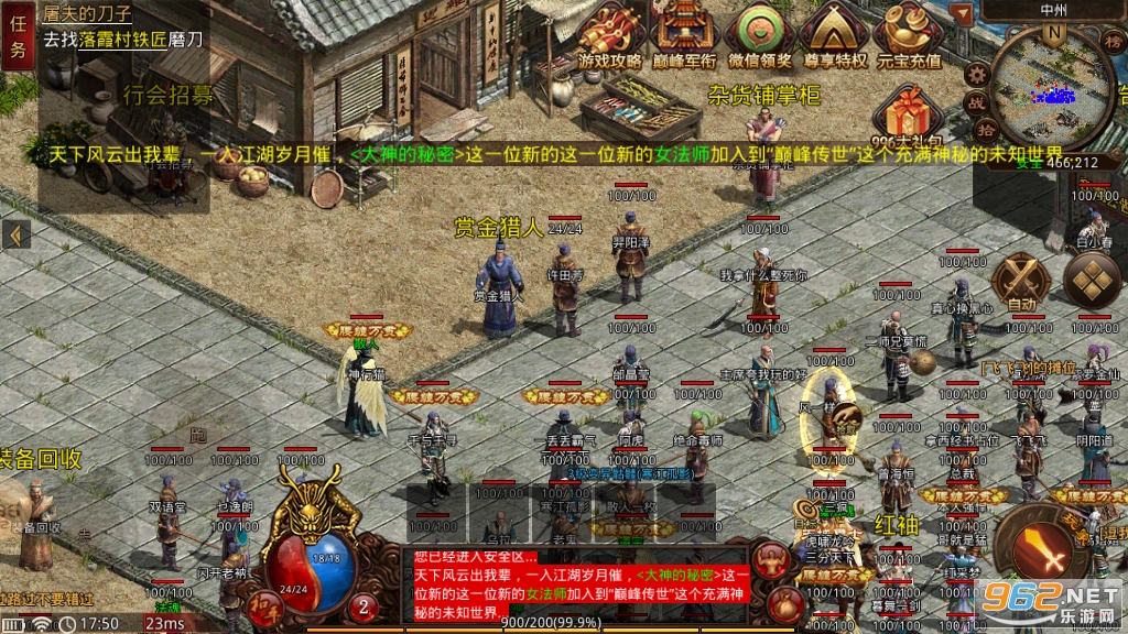 2、王城任务:做完新手指导之后,我们可以通过中州老兵,坐标472X212附件找到江湖公告NPC 在这里每天每人客户完成10个王城诏令任务,王城诏令10个为一轮做完活得大量经验和其他道具注意:必须满10个才能活得奖励,切记不要轻易删除任务!