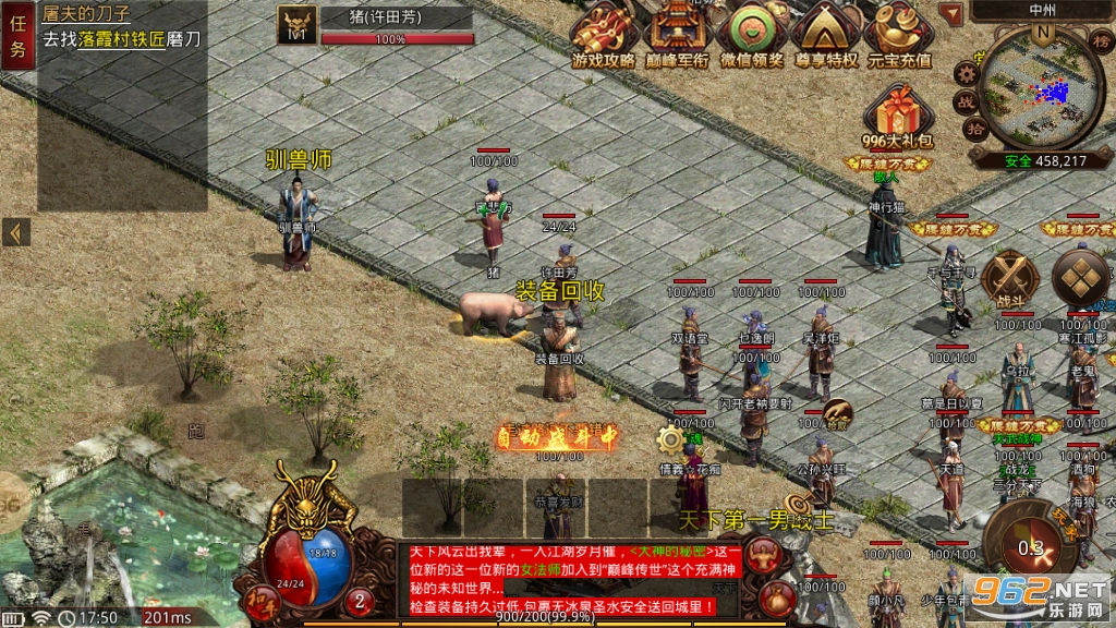 游戏中的武器装备随意爆,而且还可以随意的交易回收,让玩家轻松的赚钱元宝。