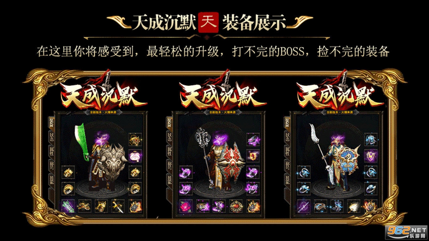 天成沉默传奇是一款复古版本的传奇手机游戏还原热血传奇的战斗比拼,一键挂机轻松完成更多的关卡冒险,创意十足的战斗体验,喜欢沉默服传奇的玩家们快来点击下载体验吧。