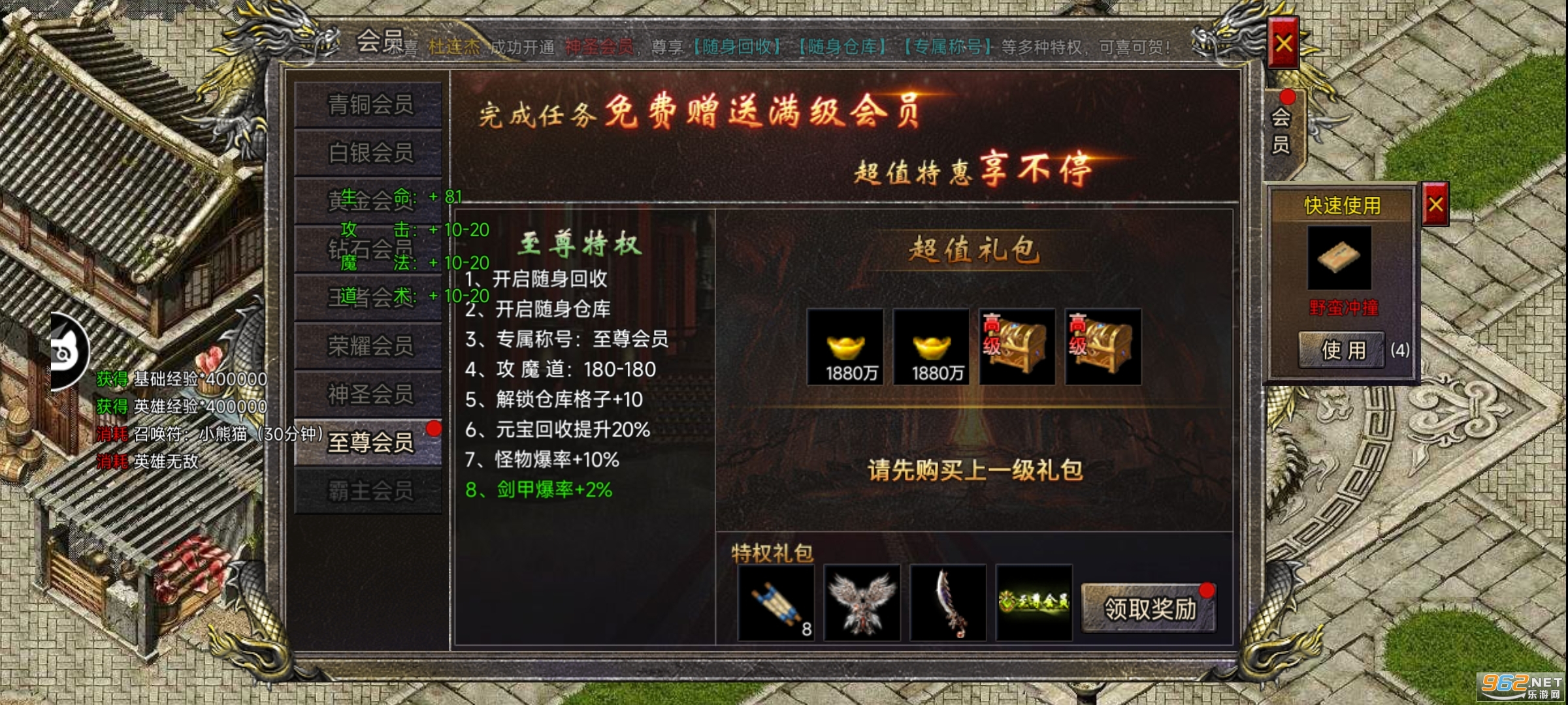 1、185雷霆合击传奇是经典复古传奇手游,福利也是超级丰厚,登录就送VIP特权。