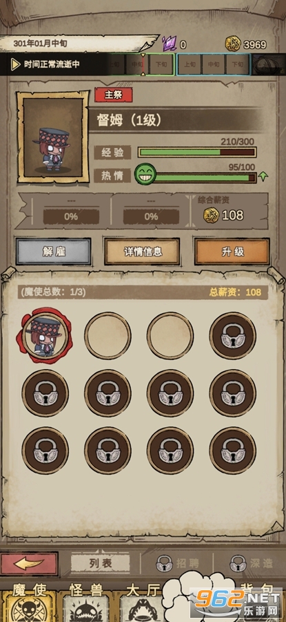 4、一把钥匙可以升级一个魔王,一个7个,其实只要升级一个即可,加个热情,职业拉胯,后期没卵用!