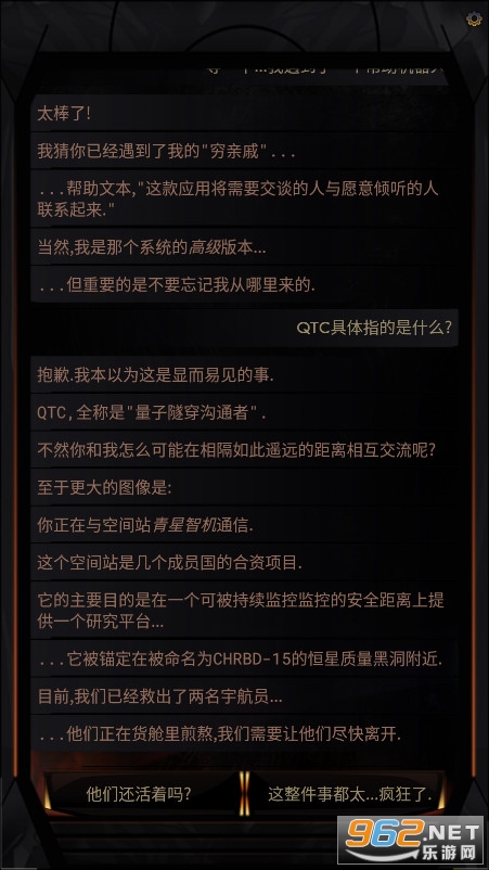 一款非常有趣的互动文字游戏,在这款游戏中玩家将以另外的方式来拯救遥远地点的宇航员,游戏中有着丰富生动的文字,还有着丰富有趣的剧情分支,你能够完成这些挑战吗?推荐给喜欢文字解谜游戏的玩家。