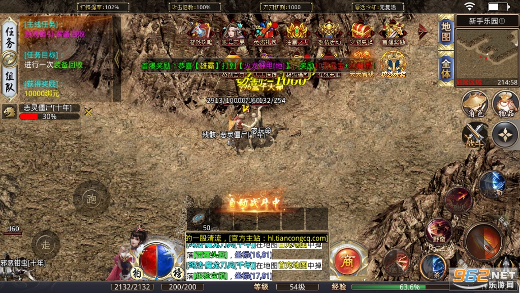 主线任务:完成引导送元宝,击杀怪物奖励龍币