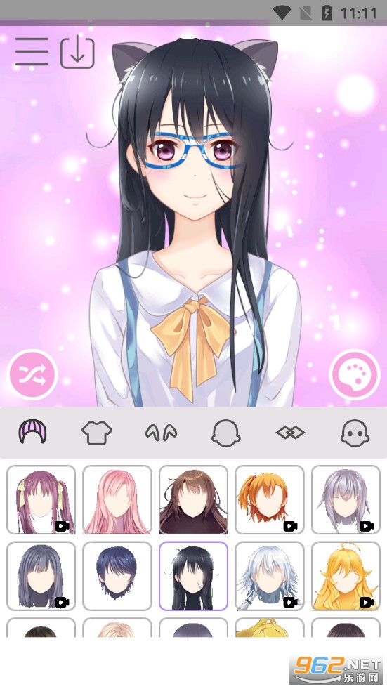 动漫女孩换装可以装扮可爱的动漫女生,你可以随意修改头发,衣服,头饰,眼睛等,还有多种漂亮的贴纸和装饰可以选择。你可以随时保存或分享你的装扮。