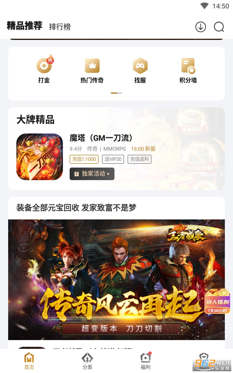 《搜服神器1元畅玩》是一款非常不错的传奇手游盒子软件,里面包含的传奇手游的类型十分的丰富,打金服、超变版、超爆版、单职业以及无限刀等等,让你体验丰富的传奇乐趣,感兴趣的亲们赶紧下载吧。
