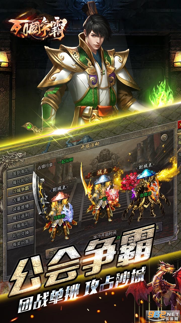 《列国争霸(火龙三职业))》是一款大型动作角色扮演类游戏。经典火龙铭文三职完美塑造,高爆 怪物装备无忧,皇城争霸叱咤沙城,热血神龙百人团战!兄弟集结,王者回归!