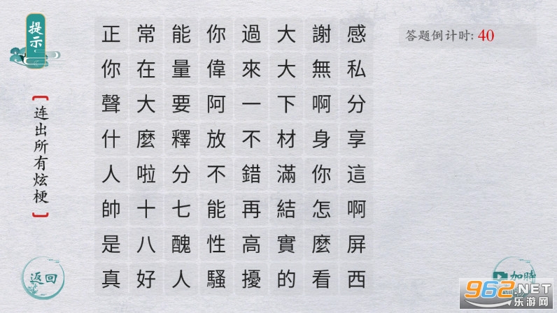 2、丰富的文字库,所有的文字都全部显示在屏幕上,需要玩家选择。