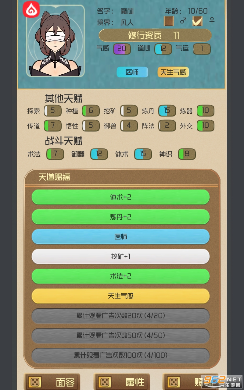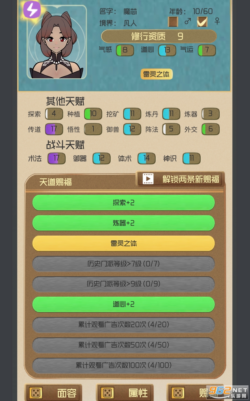 3.只有赢得自己所用的天赋,才能立足于修仙世界。你的门派将成为最强的门派!
