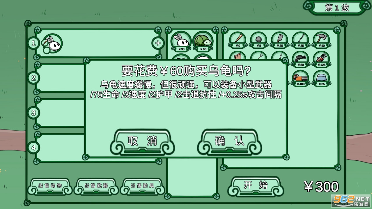 动物农场保卫战1.4最新版本更新测试游戏,最大的变化是扩大了游戏地图,以及在游戏地图中间增加了一家房间,动物没有增加新的品种,微调了猪的购买价格,还有两款全新的武器添加购买进行使用!