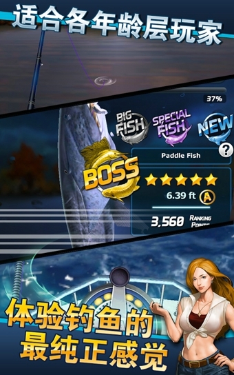 像是能跳到你眼前的活穆姨挠悖兑幌乱訤ull 3D的完美钓鱼吧。收起鱼线后鱼竿的美丽曲线,还有紧绷的鱼线在左右颤动时带给你的超紧张感!一定会让你体验到就像真的是在现实中钓鱼的一样。