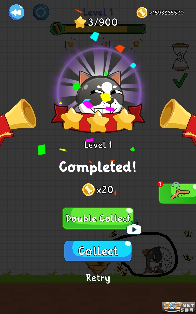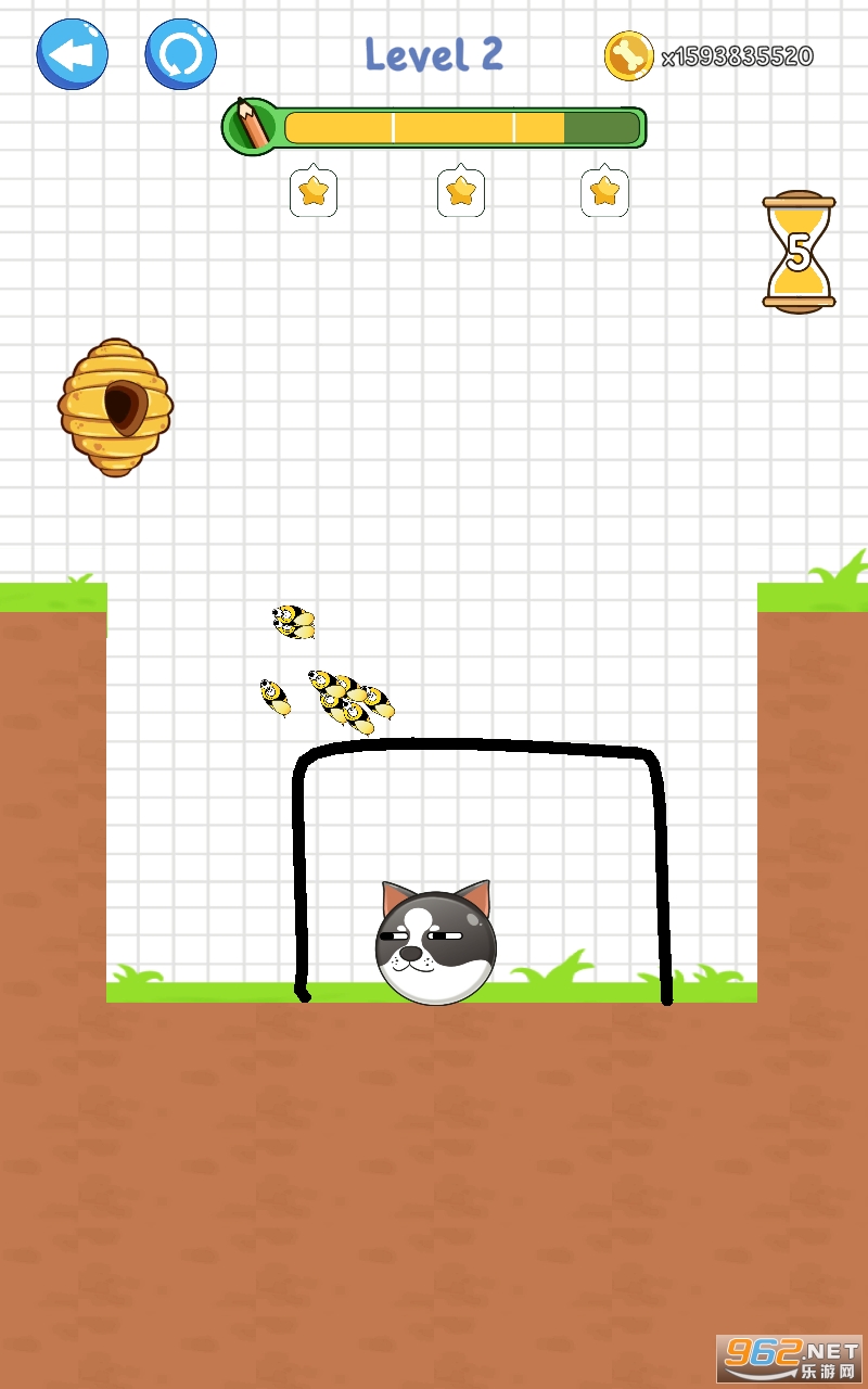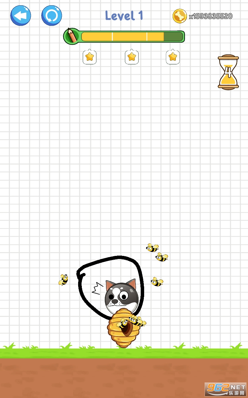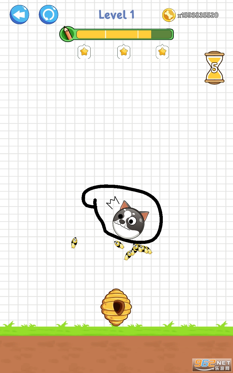 2、怎么玩?触摸屏幕画一条线,坚持 10 秒,防止蜜蜂伤害狗狗,用更少的墨水获得更高的费率!