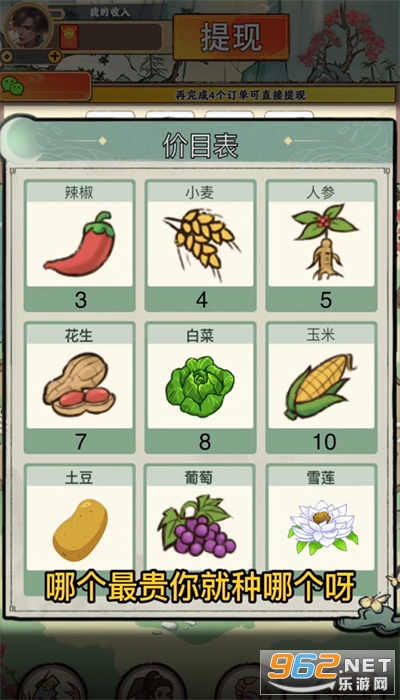 农产品能快速的成长,去收集各种稀有的种子,培育出更高等级的作物来。