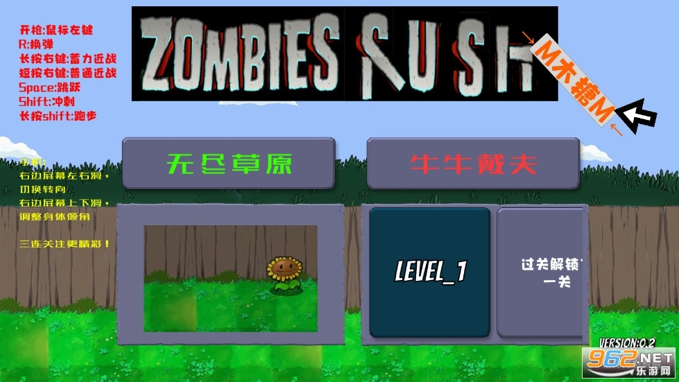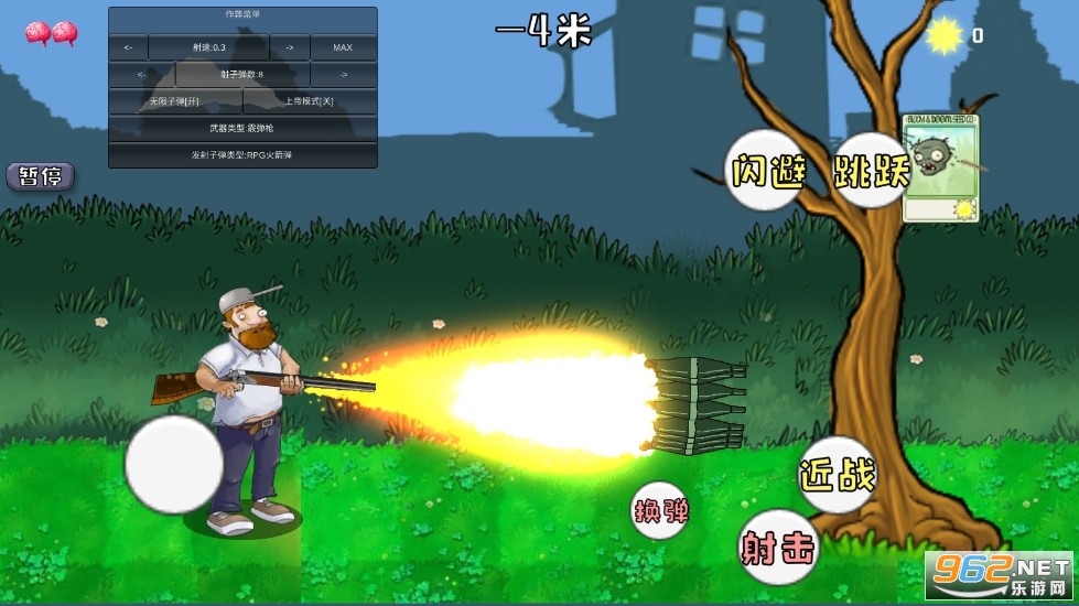 《戴夫猎枪打僵尸手机版破解版》(DaifuRushByMutangM)是up主木糖制作的一款戴夫打僵尸的魔性手游,游戏以植物大战僵尸的房屋主人戴夫为题材,玩家可以控制戴夫利用猎枪去打僵尸,而且还可以将猎枪的子弹切换成火箭筒,也可以将猎枪切换成RPG火箭筒,玩法多样。
