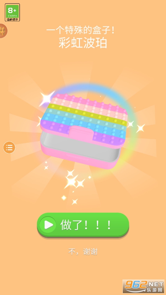 以收纳整理的玩法为核心的休闲游戏,玩家在游戏中的主要任务就是整理好饭盒以及其中的各种食物,画面清新,玩法治愈,适合各个年龄向的玩家用来打发时间,快来试试吧!