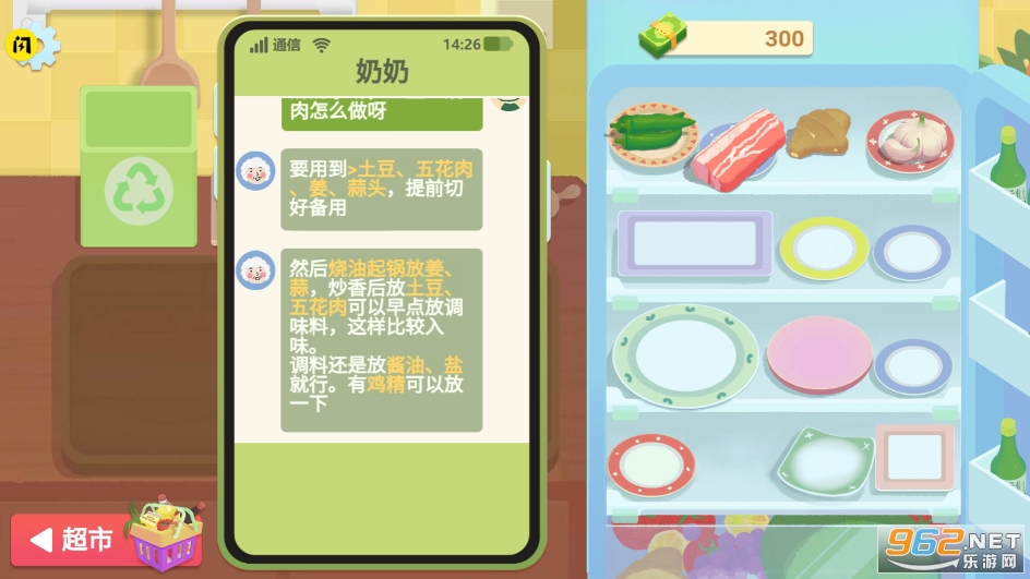 《NainaisRecipe游戏》又名《奶奶的菜谱》,是一款以做菜为主题的模拟游戏,玩家在游戏中经营奶奶的食堂,你需要根据订单,为顾客制作番茄炒鸡蛋,咖喱鸡,青椒炒肉,土豆红烧肉等菜,安排快递员送单,赚钱购买食材,不断地制作各种美食,通过游戏来学习不同菜的制作方法!