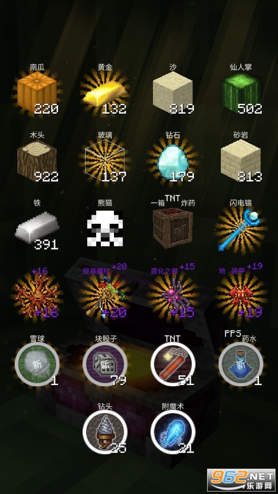 矿山超过90种资源,包括南瓜,玻璃,蓝宝石,黄金,钻石,祖母绿,玉石和紫水晶
