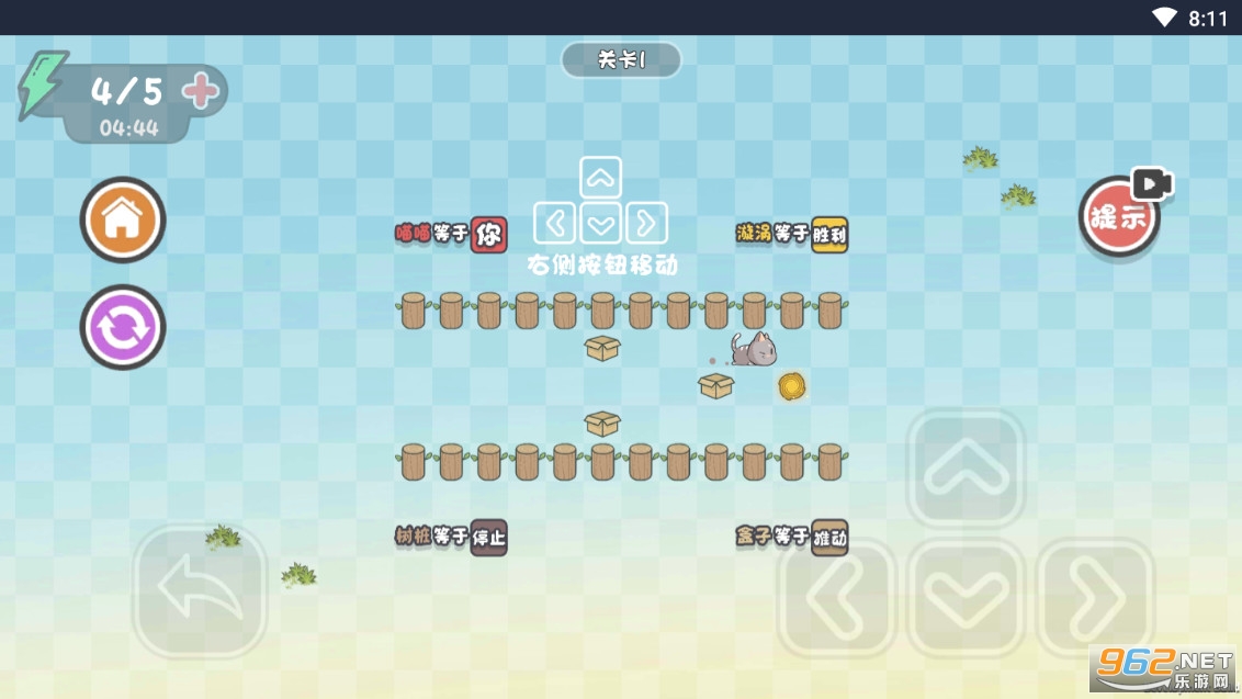 1、全新的推箱子玩法,来操控猫进行移动,努力突破层层木桩的束缚。
