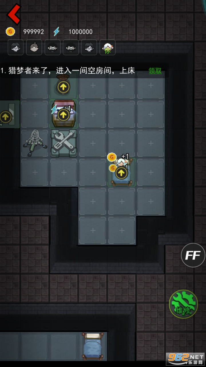 猛鬼在攻击会降低门的血量,血量快不足升级门,能够快速的恢复门的血量。