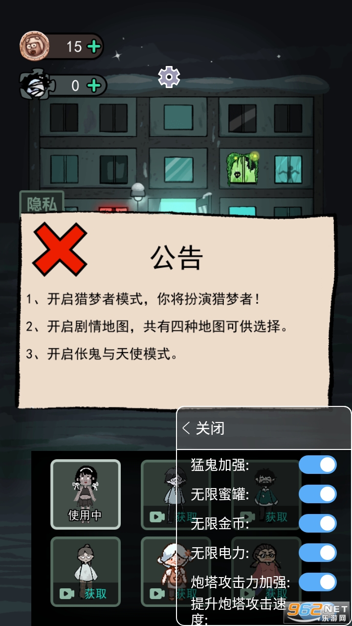 《猛鬼宿舍破解版内置菜单》是一款玩法很不错的多人趣味竞技类的游戏,整体的玩法以及丰富的操作趣味乐趣都是很不错的,玩家们在游戏中快速的点击操作即可,猎梦者模式需要完成任务获得12个碎片即可获取,感兴趣的亲们赶紧下载吧。