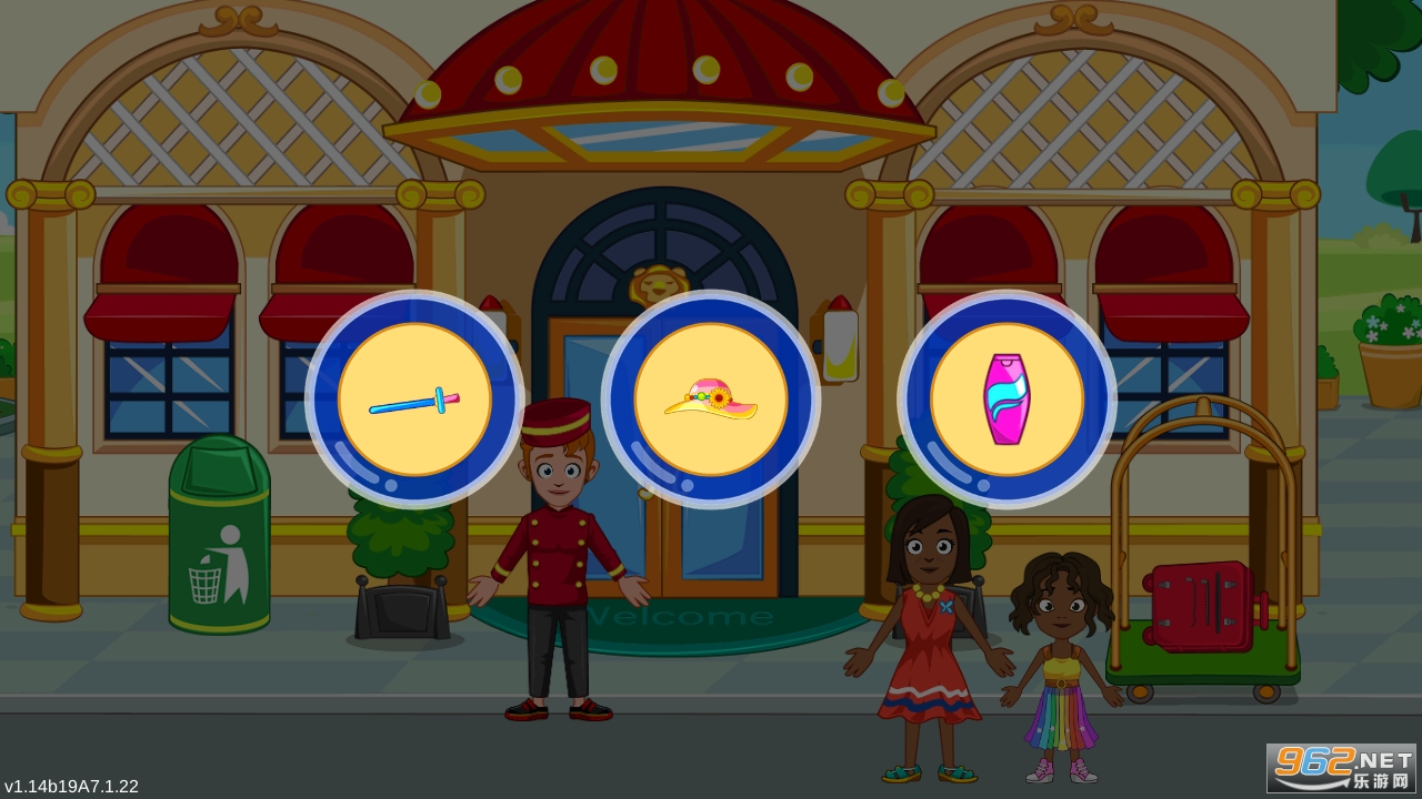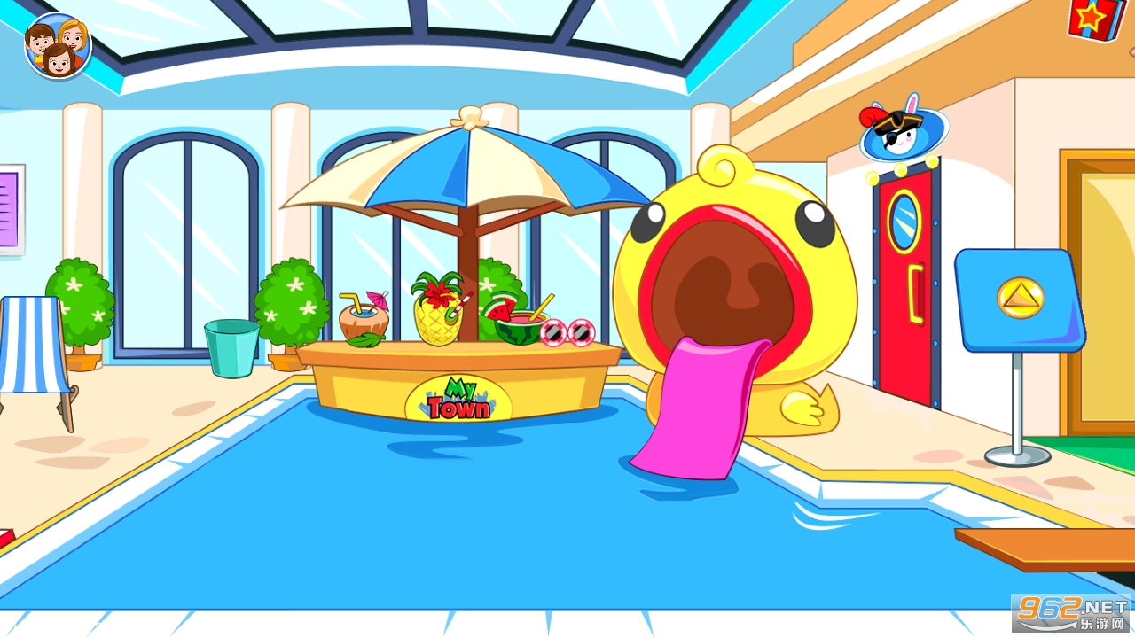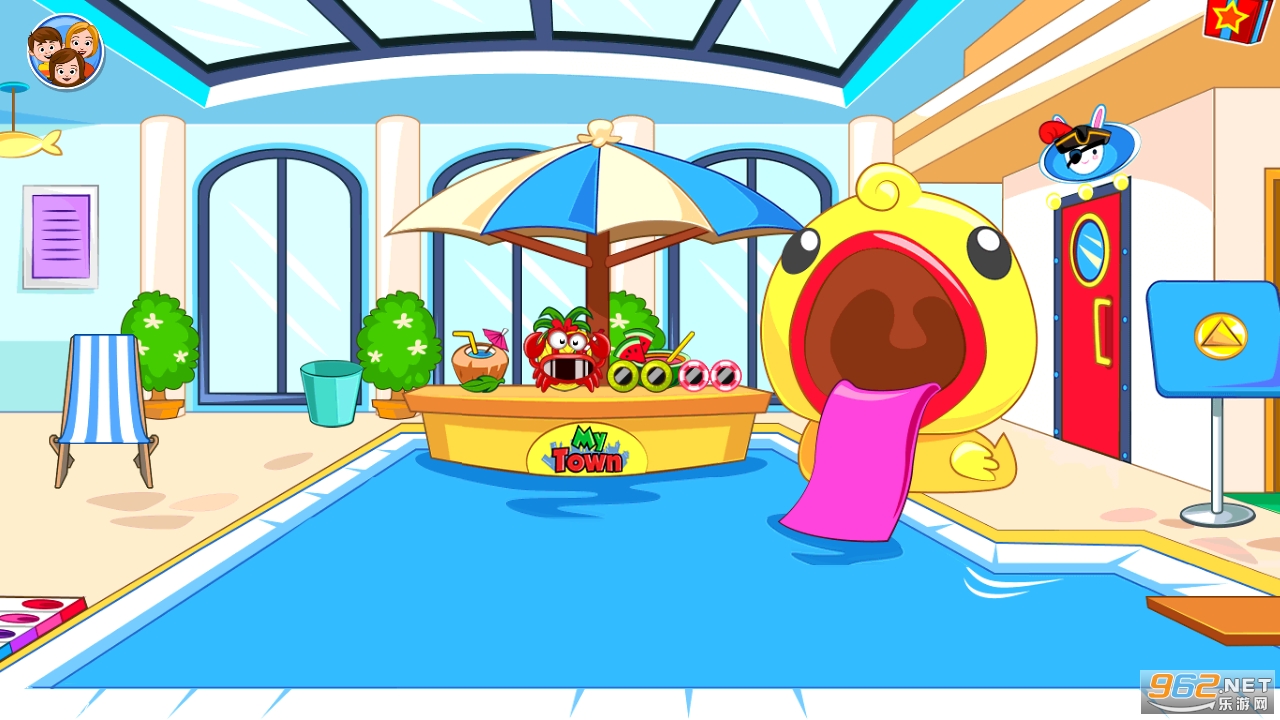 My Town的新豪华宾馆在每个房间都有乐趣和探险!让侍者为蜜月夫妇拿行李箱,保证让儿童在游泳池和宾馆游戏室畅玩娱乐!游戏中提供最可口的水果鸡尾酒、巨型海盗船和新表情功能;My-Town的新宾馆终于开业啦!