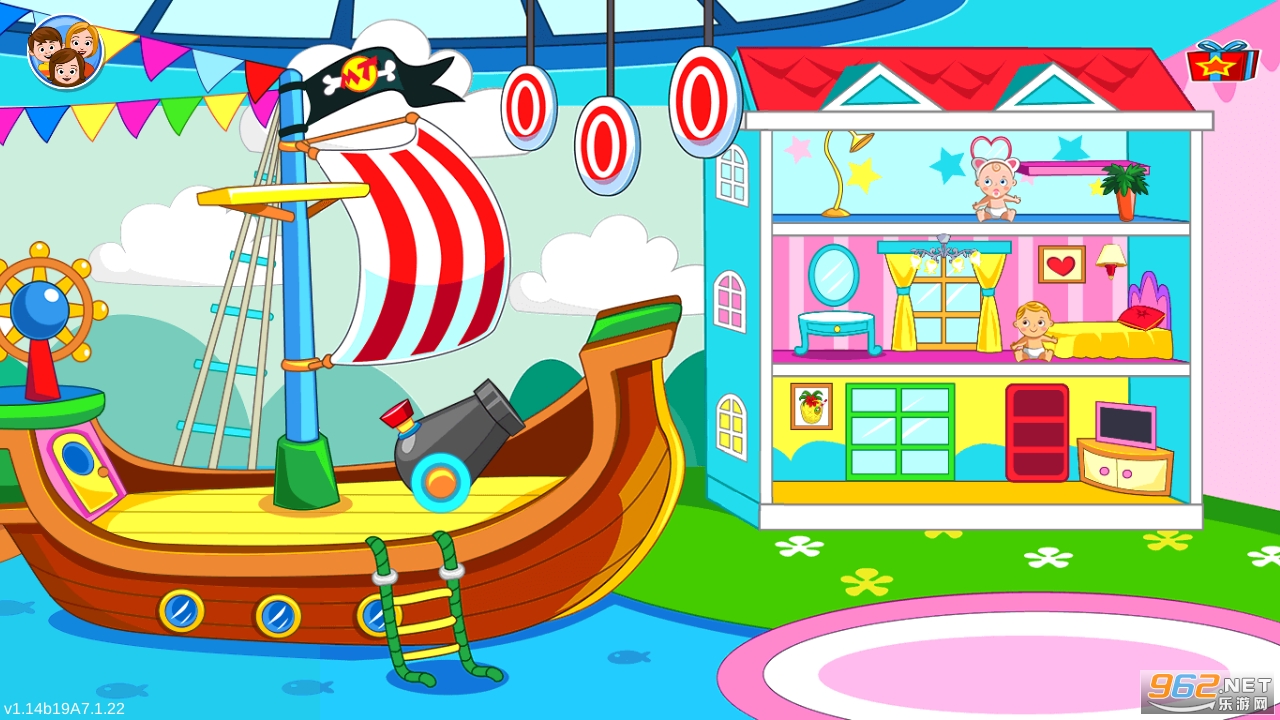 -最佳宾馆的最棒游戏室。你的游戏室里有一个巨型玩偶之家、一艘海盗船和许多服装和玩具供玩耍