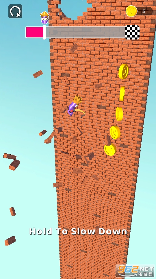 《砖石攀岩游戏》是一款以躲避玩法为核心的休闲游戏,控制着角色急速进行下降,沿途通过在砖块上攀岩来躲避所有的障碍物。选择你喜欢的角色皮肤以及武器,和对手进行比拼闯关,比较考验玩家的反应能力,喜欢的话就快来下载吧!