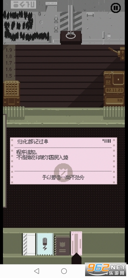 一款非常有趣的模拟扮演游戏,在这款游戏中玩家将面临各种现实的状况,你需要根据你的想法来做出选择,游戏中你将检查各种细节,控制好入境的数量,同时还可以对每个人进行观察,推荐给喜欢模拟游戏的玩家。
