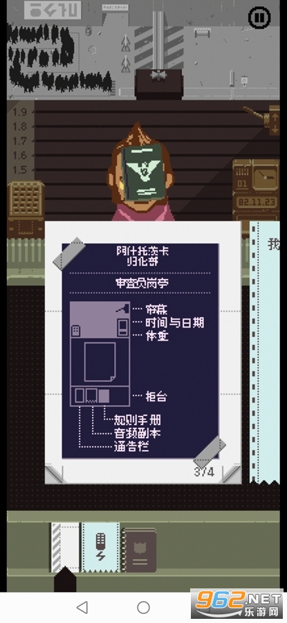 《请出示证件手机版中文版》是一款像素风格的模拟游戏,在这款游戏中你将成为一名出入境管理审查人员,你需要根据出入境的护照签证来进行审查,确定是否允许入境,游戏的玩法丰富多样,现在就来试试吧!