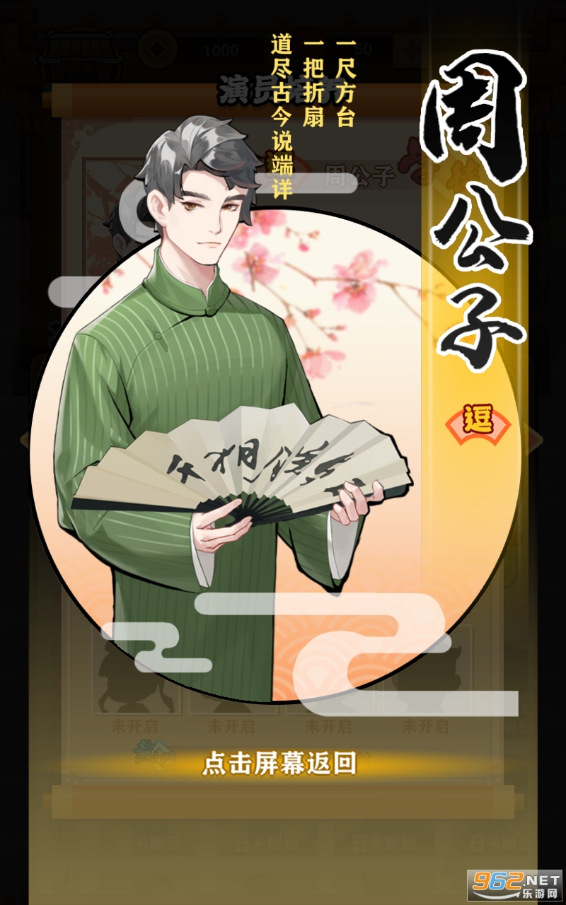 2、解锁新的艺人,登场进行演出,吸引客人就座听相声,升级茶馆获得更多道具。