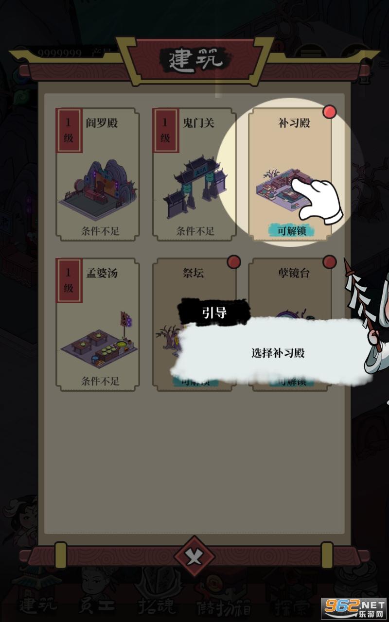 能看到地府所有的建筑,解锁或升级他们,将为你带来与众不同的放置模拟体验