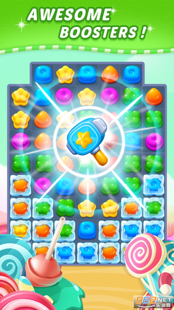 典型的三消游戏,享受独特的消除体验,丰富的消除关卡等你挑战,有时候大家连续消除还会触发酷炫的特效,满屏特效非常好看,会让你玩得停不下来的。