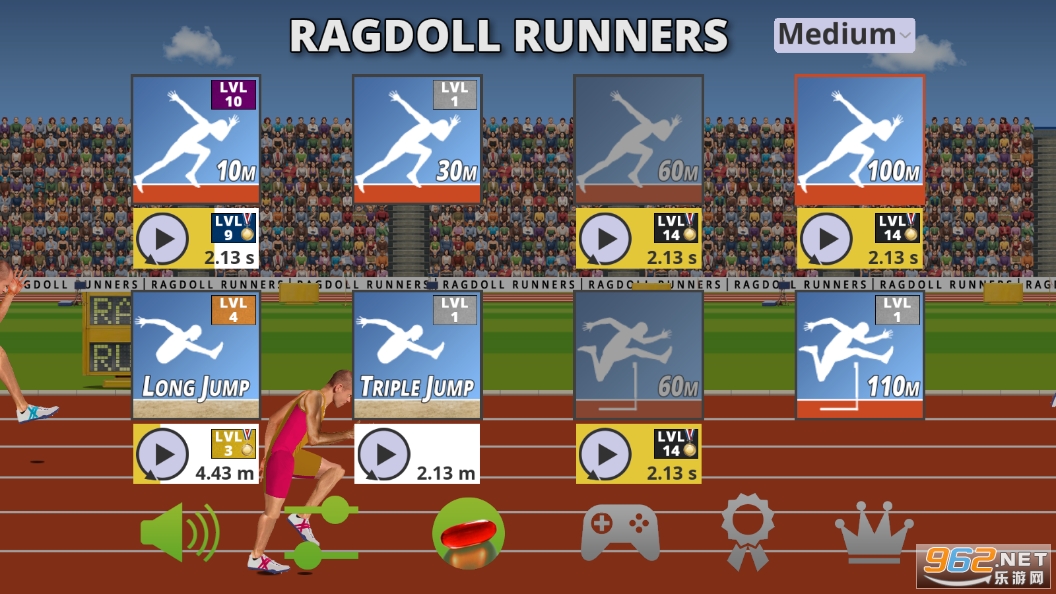 《ROGdoll runners破解版》是一款超级虐心的跑步模拟器。玩家可以在游戏里面挑战10m、30m、60m田径,跳远、三级跳远,60m跨栏、110m跨栏等不同的比赛项目,控制你的角色在游戏中灵活的奔跑,挑战冠军,可以选择简单,一般,困难三种不同的游戏模式~