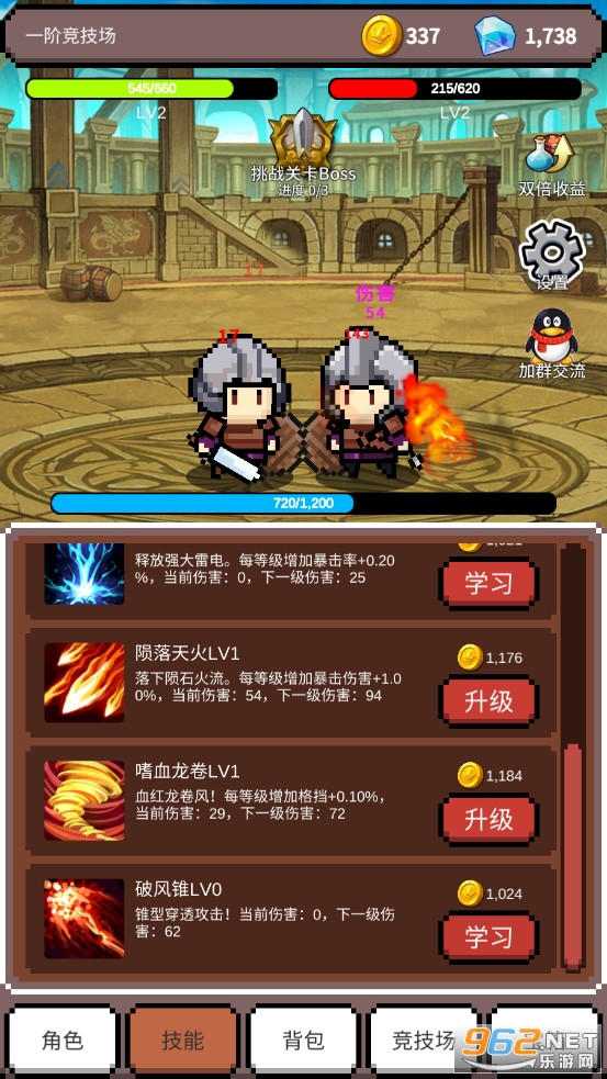 -只有打败每阶竞技场的Boss才可以前往下一阶竞技场哦,技能也会被锁住上限。