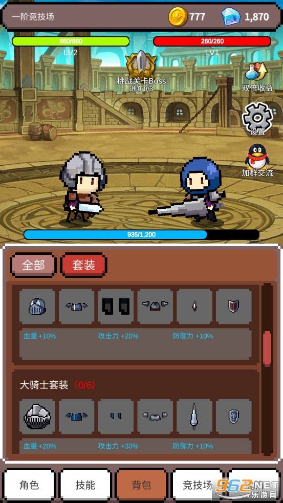《神之竞技场游戏》是一款像素风格的放置挂机战斗手游,游戏中有着一个勇士会一直的挂机战斗,通过击杀敌人来获得经验、金币等奖励,可以强化属性,学习各种技能,可以收集强力装备来提高攻击力,有着多种不同的竞技场模式可以挑战,玩法多样。