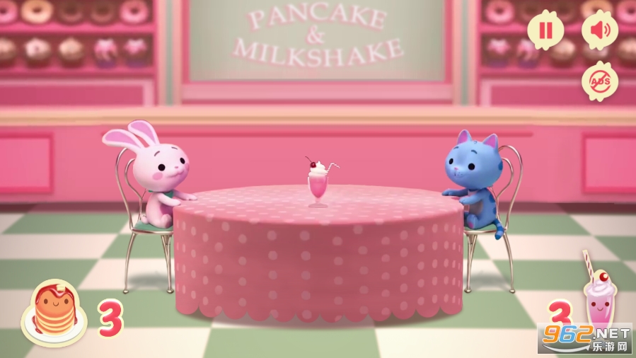 非常有趣,也非常简单的一款卡通休闲类游戏,游戏操作非常容易上手,所有年龄段的小伙伴都可以玩,主要考验玩家的反应,你需要将奶昔和松饼顺利的递给对应的小伙伴!