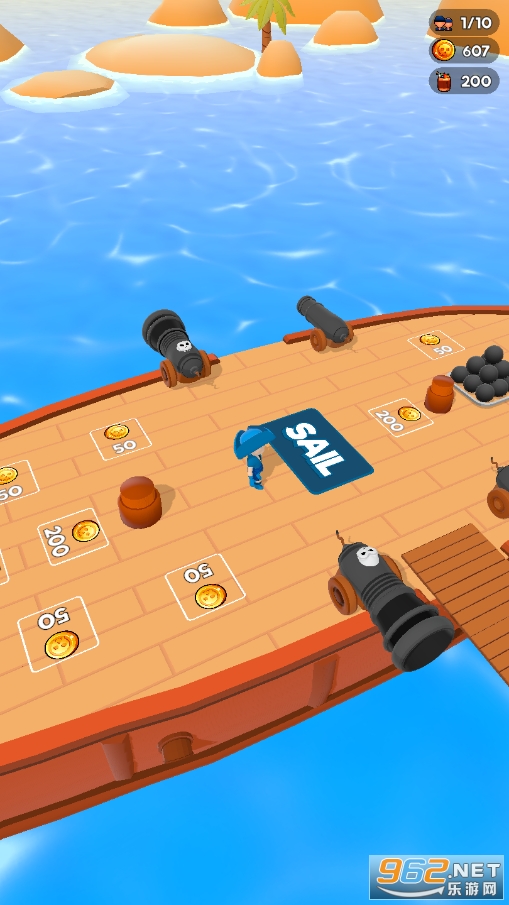 以航海为主题的休闲冒险游戏,画风看起来十分华丽,里面有着丰富的武器和大炮,超多的道具可以让你来解锁装备装置,收集宝藏,玩家还可以在游戏里面和海盗大战,探索不同的岛屿!