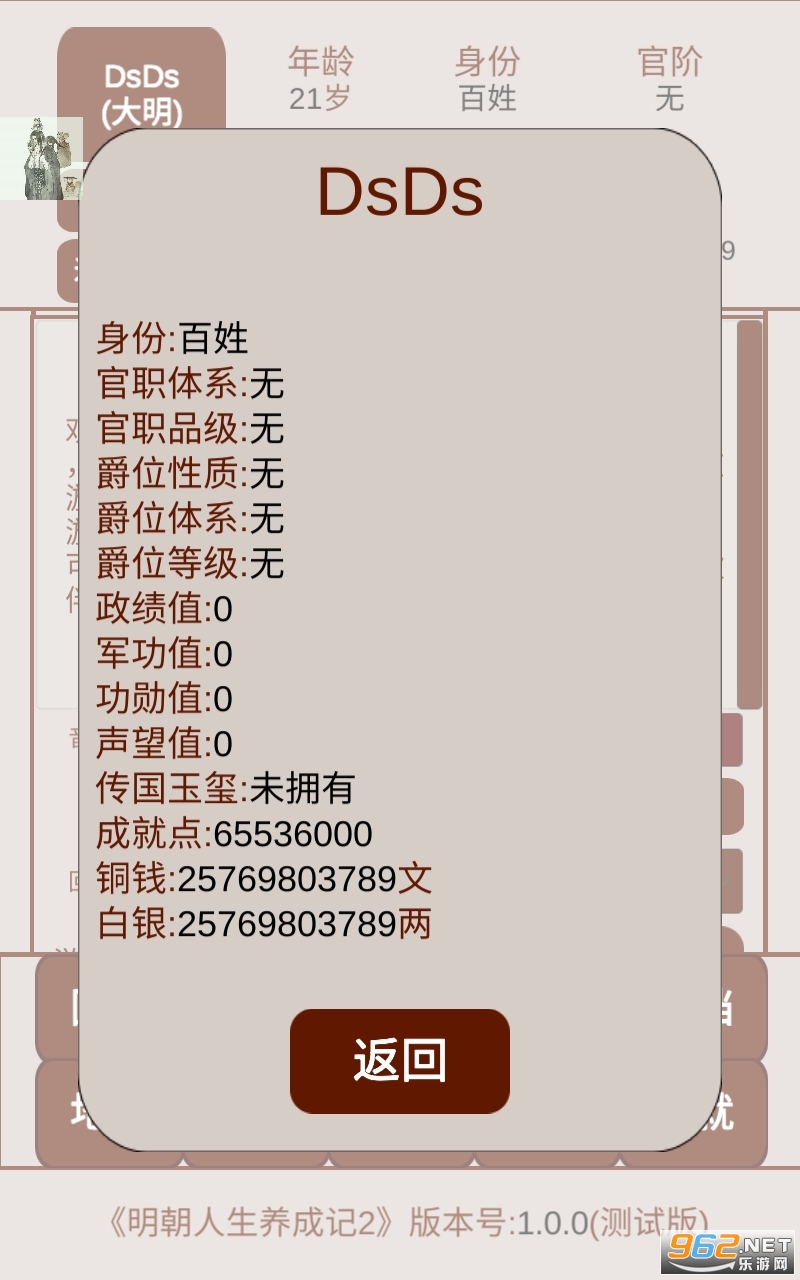 《明朝人生养成记2》是一款以明朝为背景题材,模拟、经营、养成为玩法的单机文字游戏,同时也是《明朝人生养成记》的续作,在这里您可以入朝为官,实现抱负,亦可夺取天下,万世传承,或可经商种田,腰缠万贯,体验一段不平凡的大明人生!
