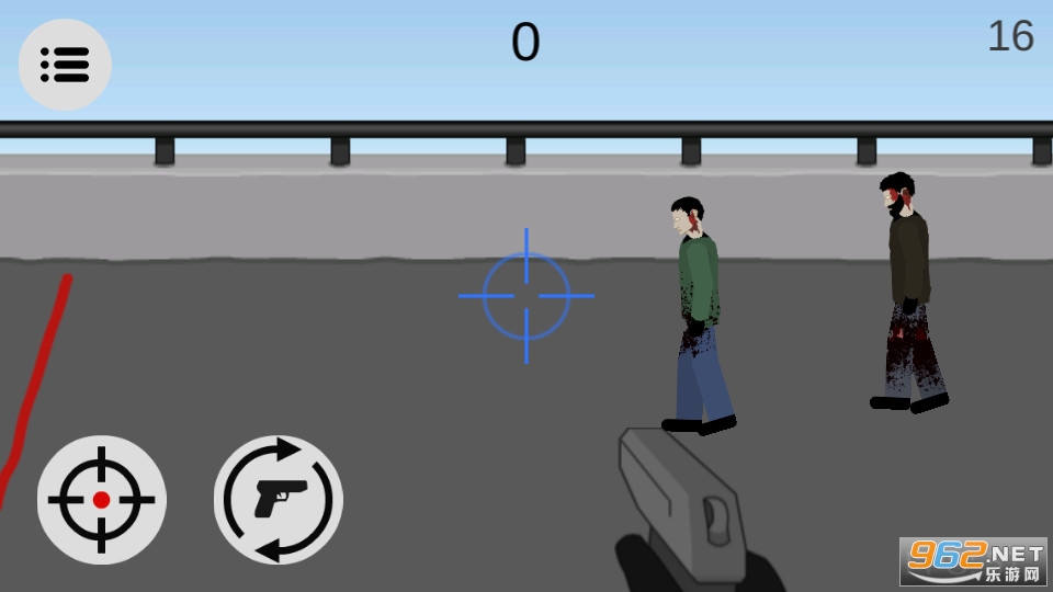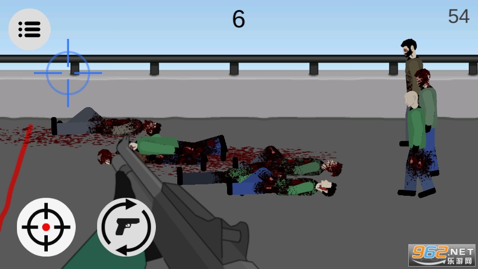 成群结队的僵尸正在前往幸存者区域。使用你的武器杀死僵尸。在屏幕上滑动以瞄准和射击!不要让僵尸越过红线进入幸存者区域。