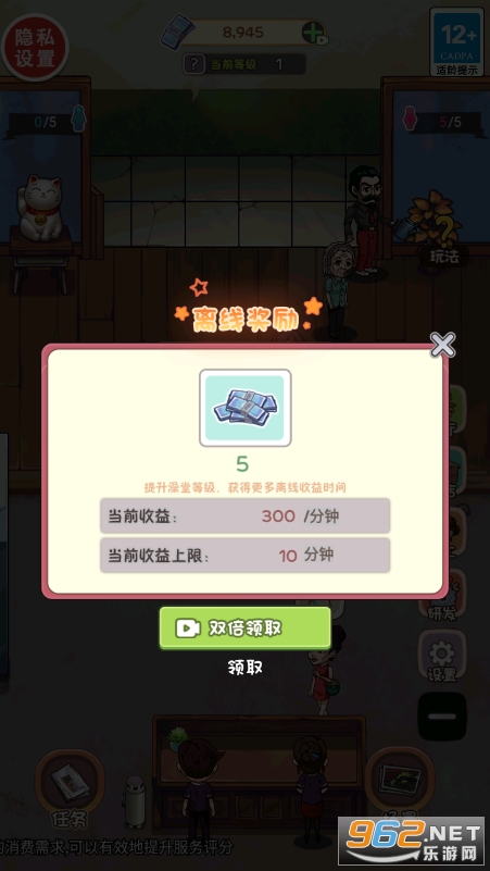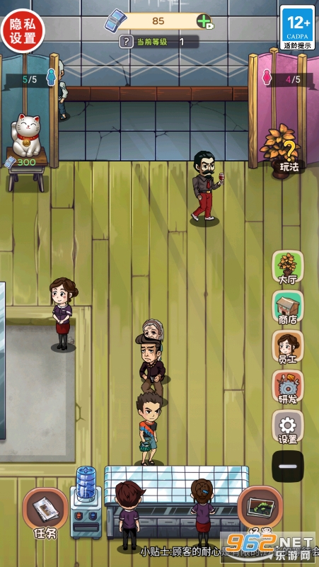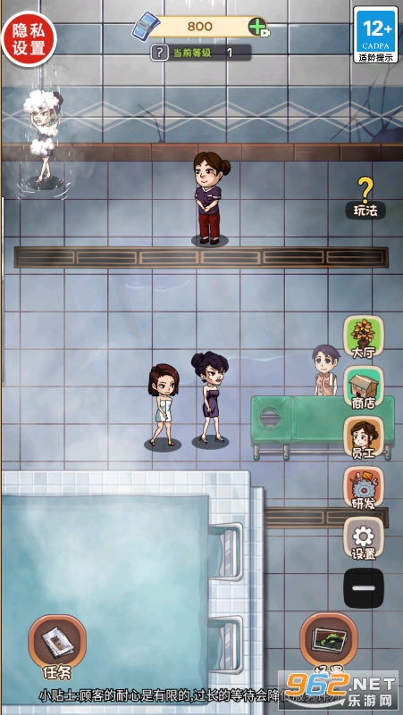 好玩的模拟游戏,以经营澡堂为背景,玩家将在这里不断地完善升级各种设施,购买物品,装修自己的澡堂,吸引更多顾客来这里光谷,不断地扩大规模,利用经营澡堂发家致富!