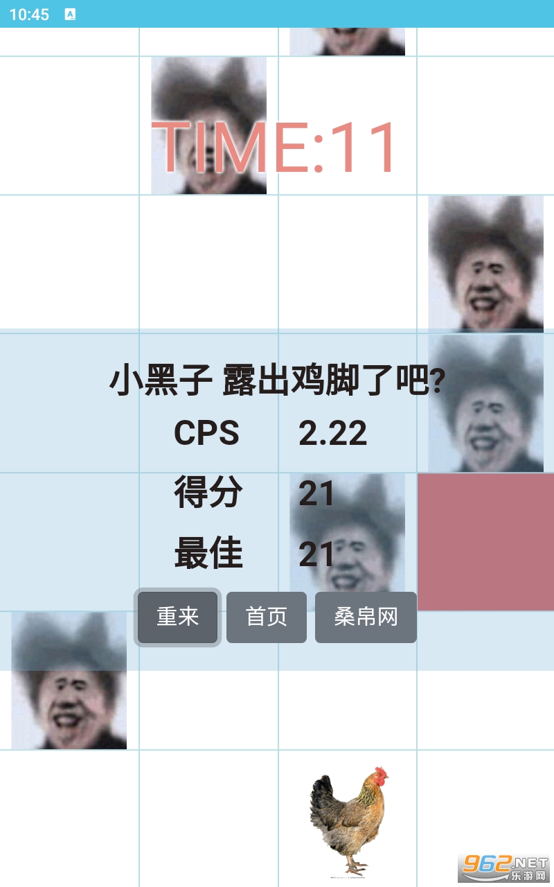 2、听坤坤的歌曲,去点击坤坤的方块,分数累积起来,不断的去挑战;