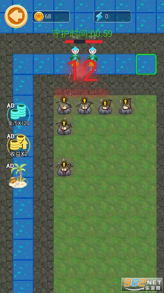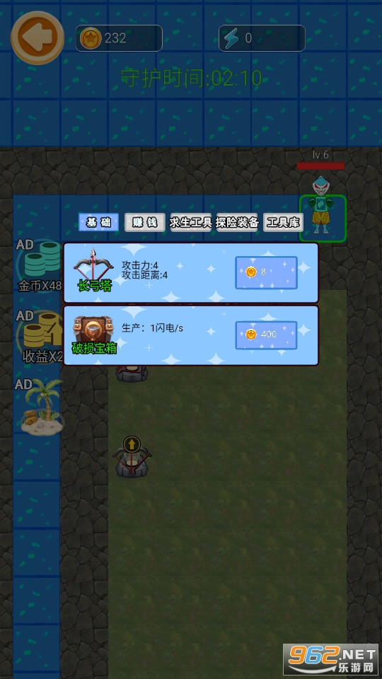 玩家也可以利用开局产生的金币去升级自己的门或者是放置炮塔,击退来袭的海怪,获得发育时间。