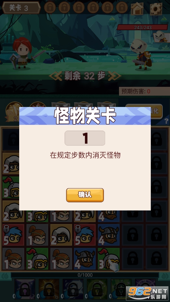 需要策略的一款休闲游戏,融合了合成的玩法,玩家在游戏中不断的进行装备升级,通过对士兵升级来在指定的步数之内完成对怪物的进攻。快来下载吧!