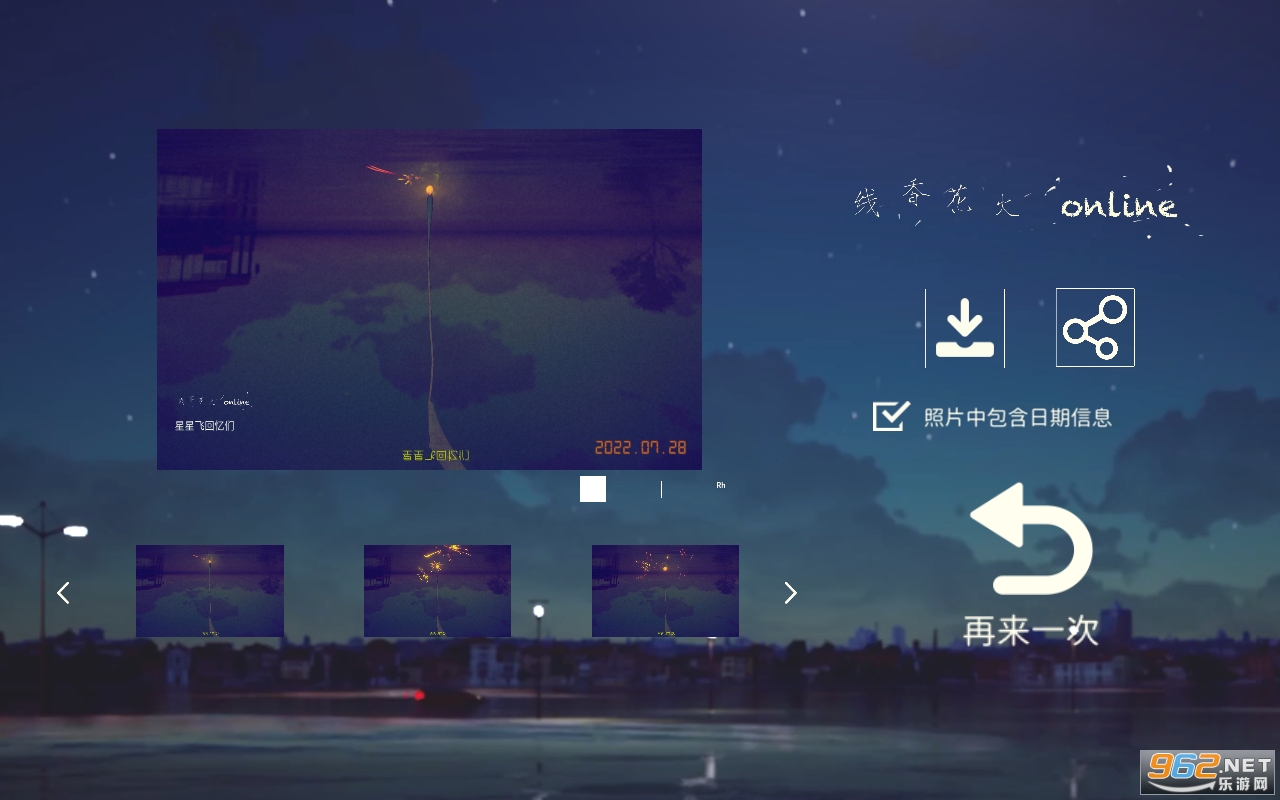 2、放烟花过后,在烟花将要熄灭的时候,你可以把照片进行保存留念,也可以发布给朋友。