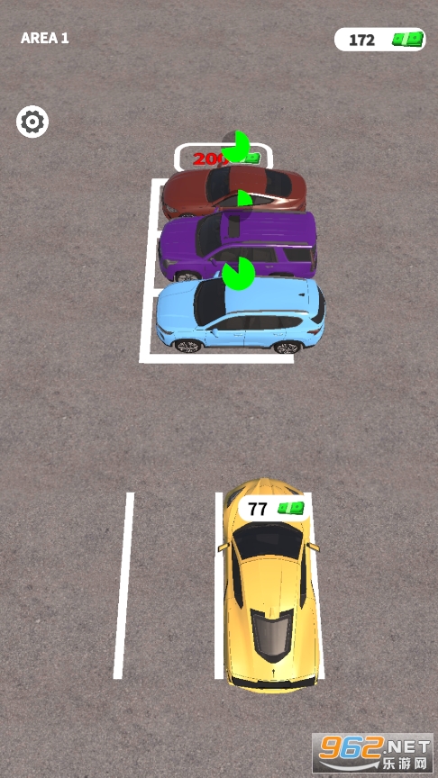 3、玩家需要避开停车场内的障碍物,到达指定停车位才能通过关卡。时间越短越好。